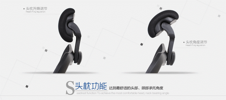 首先,我们来看看颈托。对于需要经常后仰放松头部颈部的用户来说,颈托的高度与角度决定您颈椎的疲劳度,合理的颈托高度应将颈托调在颈脊椎的第三节到第七节以便使颈椎得到必要的支撑,有效解除颈脊椎的疲劳。但由于各人体型不一,很多固定式的颈托往往并不处于使用者需要的位置,那对于舒适度来说就是帮倒忙了,因此,如果座椅具有颈托,其高度、深度和俯仰角度一定要是可调节的。值得注意的是:相对于工作椅的其他部分,颈托更容易受人体汗液发油的侵袭。所以,优秀产品会采用可拆卸更换清洗颈托的设计,更显人性化和亲和力。